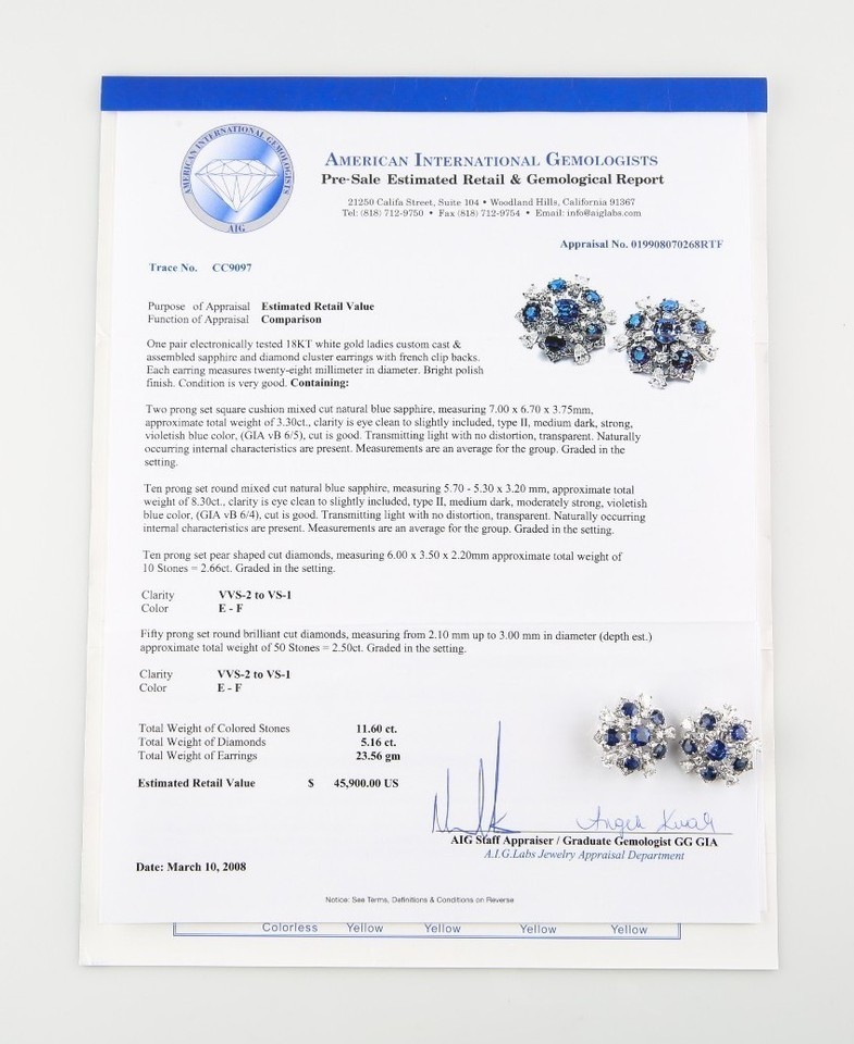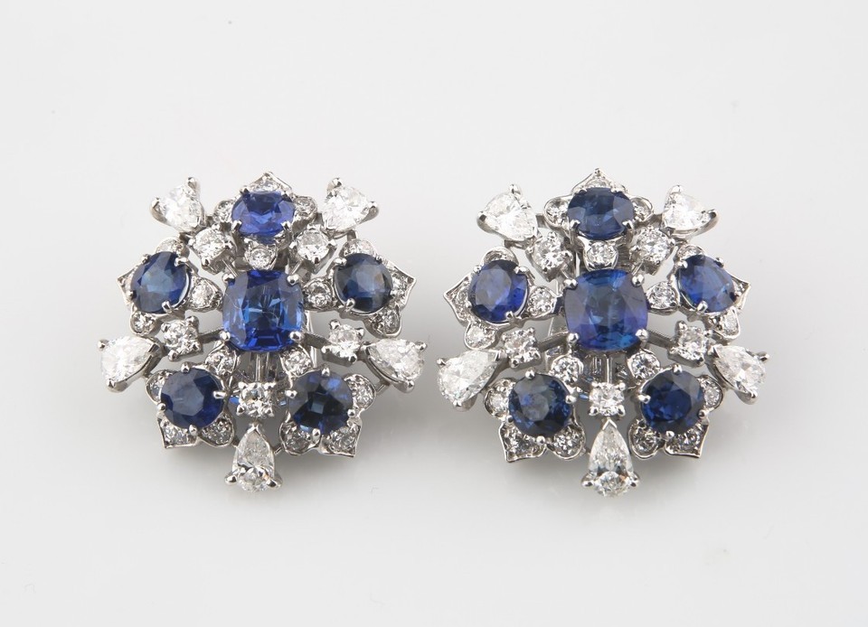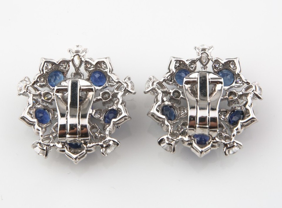 11.60 Carato Blu Zaffiro e Diamante 18k Oro Bianco Grappolo Orecchini