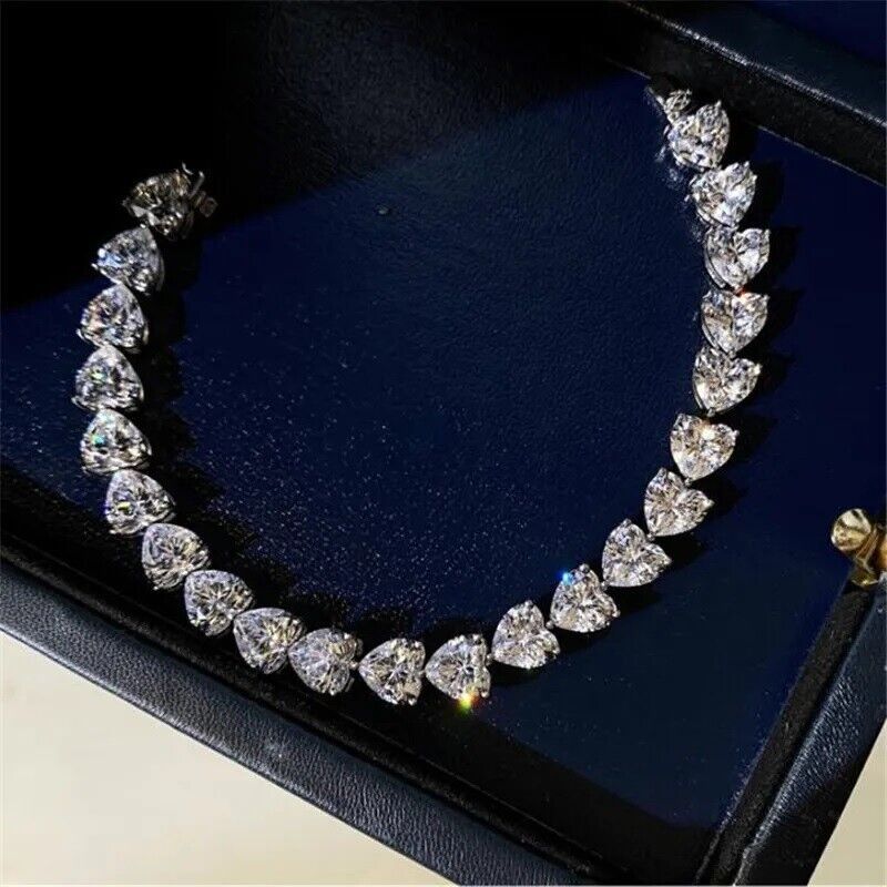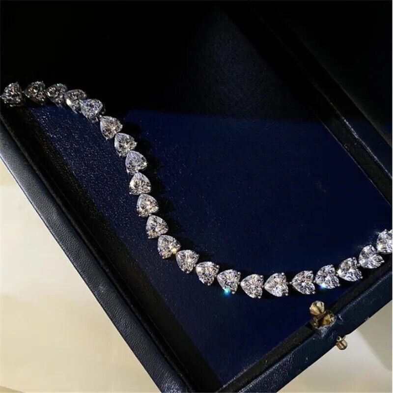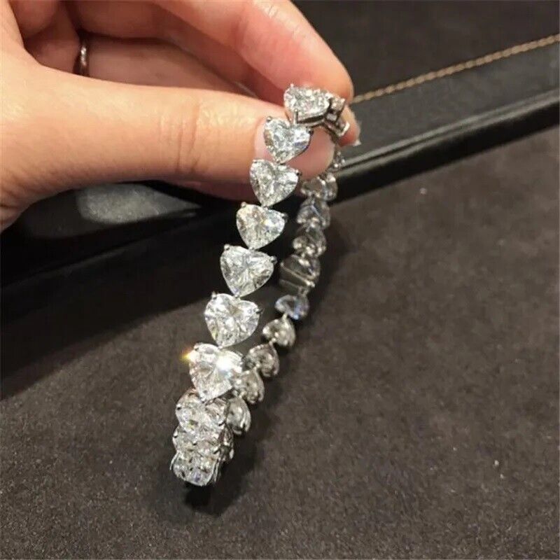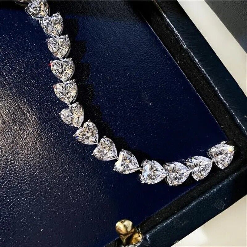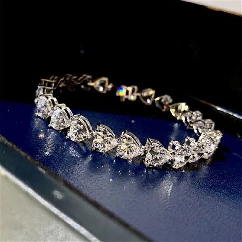 11 Ctw Heart Lab Created Diamond 14K White Gold Plated Tennis 5 MM Bracelets 7"