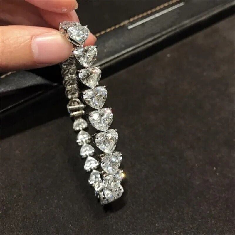 - 11 Ctw Heart Lab Created Diamond 14K White Gold Plated Tennis 5 MM Bracelets 7"