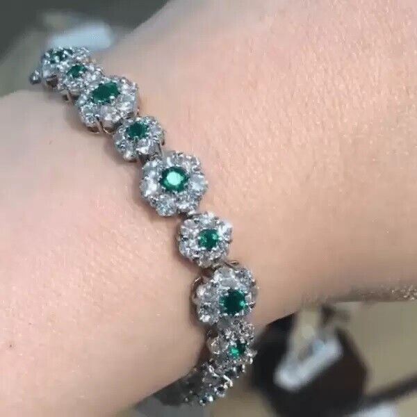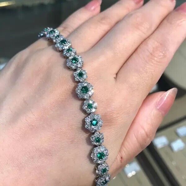 11 Ctw Lab Created Emerald 14K White Gold Plated Flower Bracelet With Free Gift