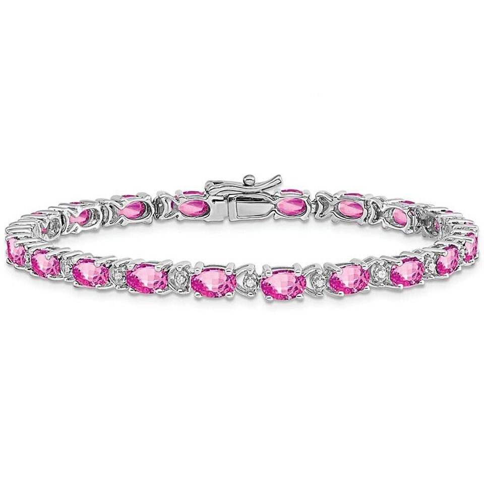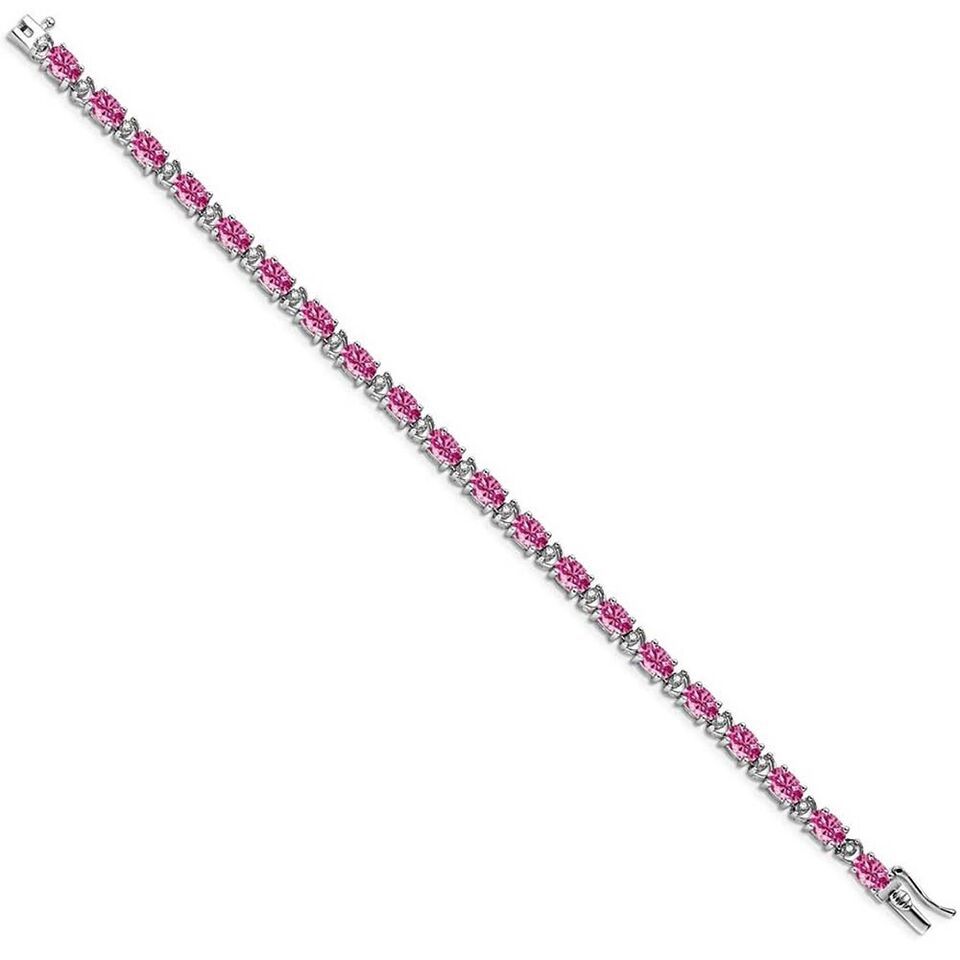 11 Ctw Oval Lab Created Pink Sapphire 14K White Gold Plated Tennis Bracelet 8"