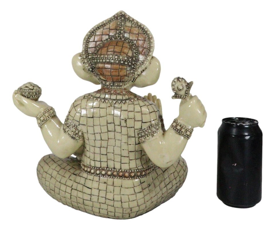 ? This Ganesha Sitting In Meditation Statue measures 11.25" tall, 10.5" wide and 6.25" deep approximately. He weighs about 3.75 pounds.