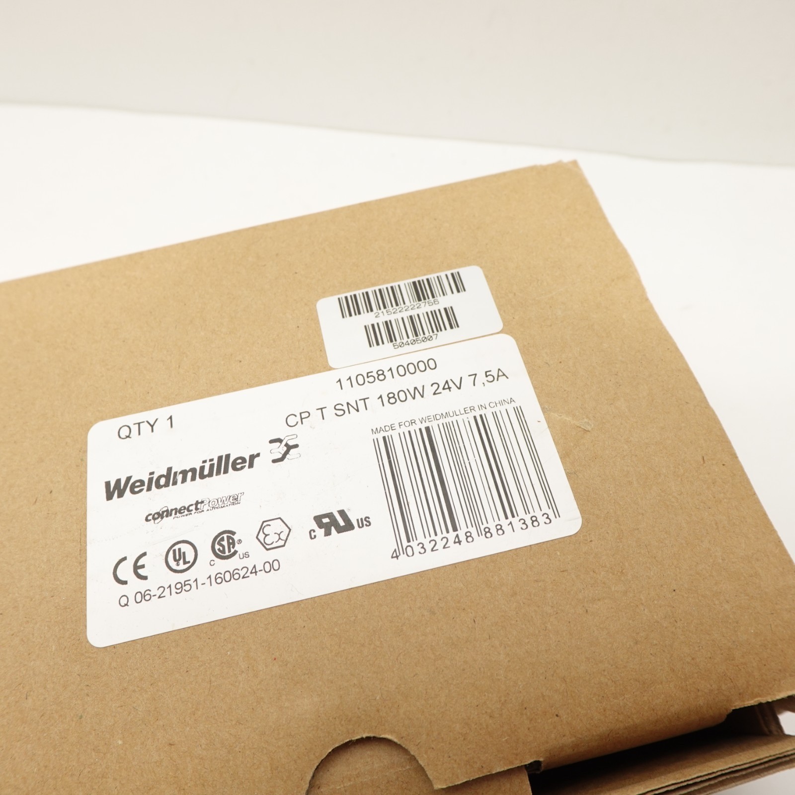 - 1105810000 CP T SNT 180W 24V 7.5A Weidmuller Power Supply *NEW*