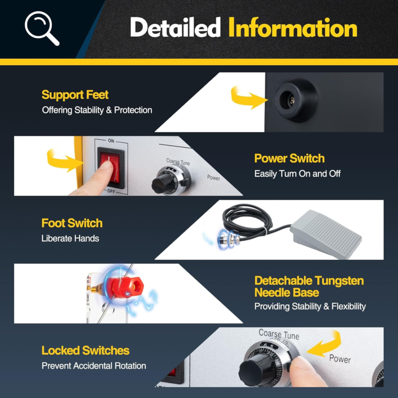 ?Wide Application -- This spot welder is mainly used for welding various buckles, such as gold and silver necklaces, earrings, etc. Suitable for fast welding of platinum, gold, silver and steel. Not applicable to artifacts.