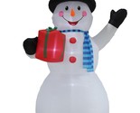 12 Foot Tall JUMBO Lighted Christmas Inflatable Snowman Holding Gift Box with Blue Scarf