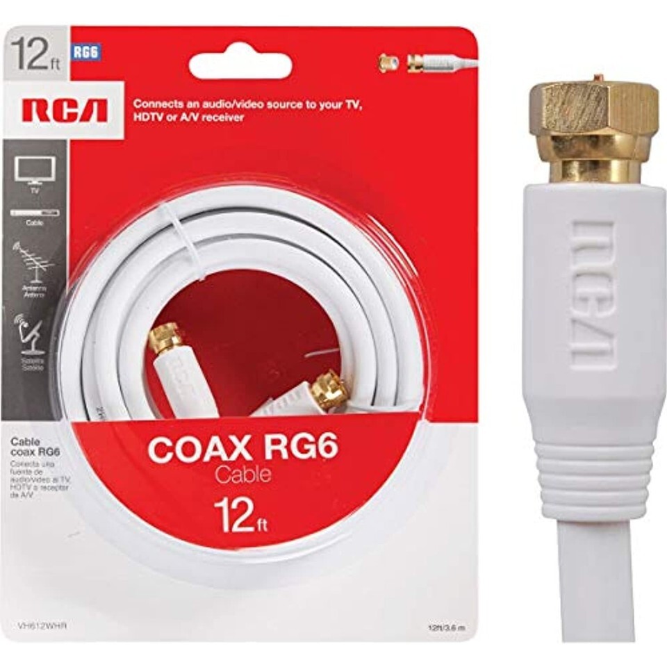 Quality cable that can be used with an antenna, VCR, TV, cable box, or satellite receiver. Digital RG6 coaxial cable with F-connector carries both audio and video signals. Ideal for older devices that don't have RCA or any of the newer audio video connections. Length: 12 Ft. Color: White Type: Digital RG6 Coaxial Cable