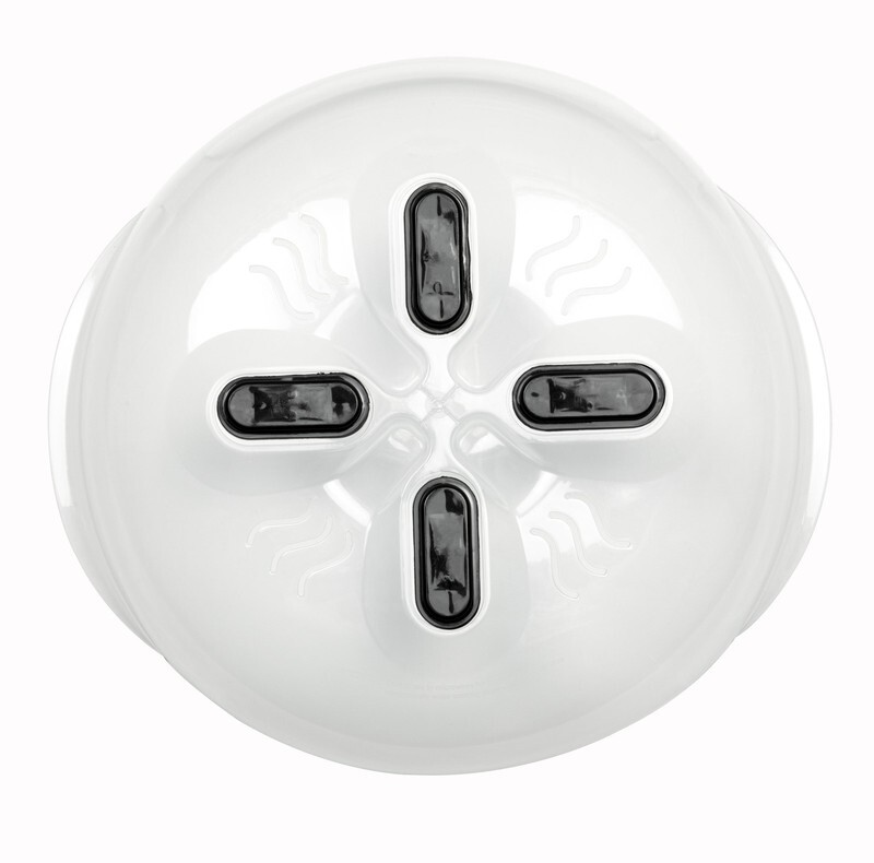 12-in Microwave Plate Cover Stops Splatters for a Cleaner Microwave Includes Magnets so it is Easily Stored on the Inside Top of the Microwave Features Ventilation Holes That Allow Moisture to Escape Dishwasher Safe