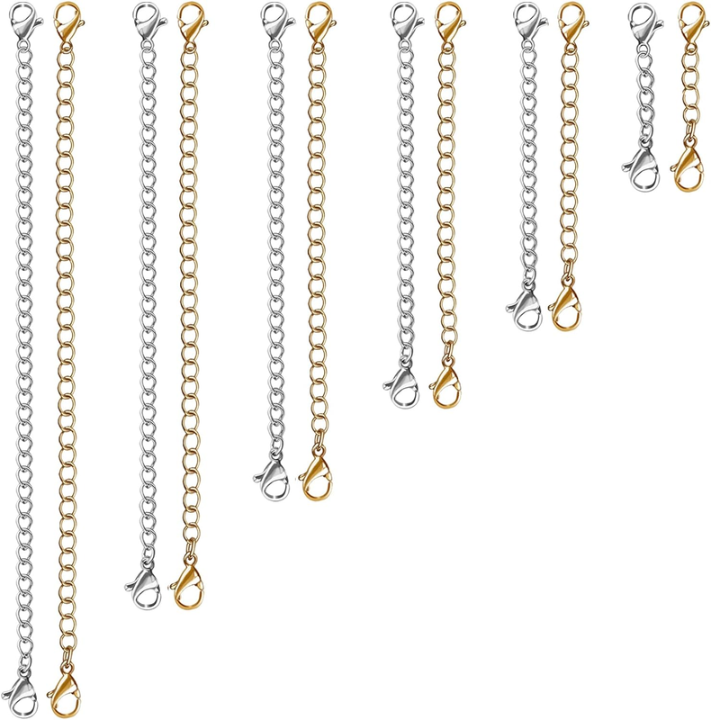 12 PCS Necklace Extenders - Stainless Steel Necklace Extension Chain for Jewelry, Bracelets Anklets (6 Gold 6 Silver, 1"-6" Lengths)