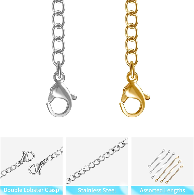 - 12 PCS Necklace Extenders - Stainless Steel Necklace Extension Chain for Jewelry