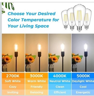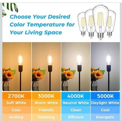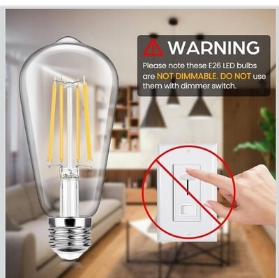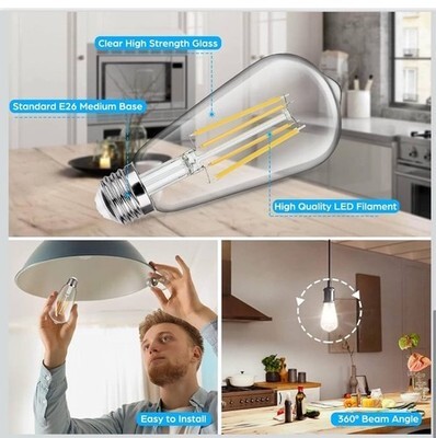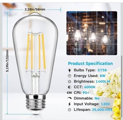 - 12-Pack E26 LED Light Bulbs Vintage Edison 8W Light Bulbs Replacement 4000K