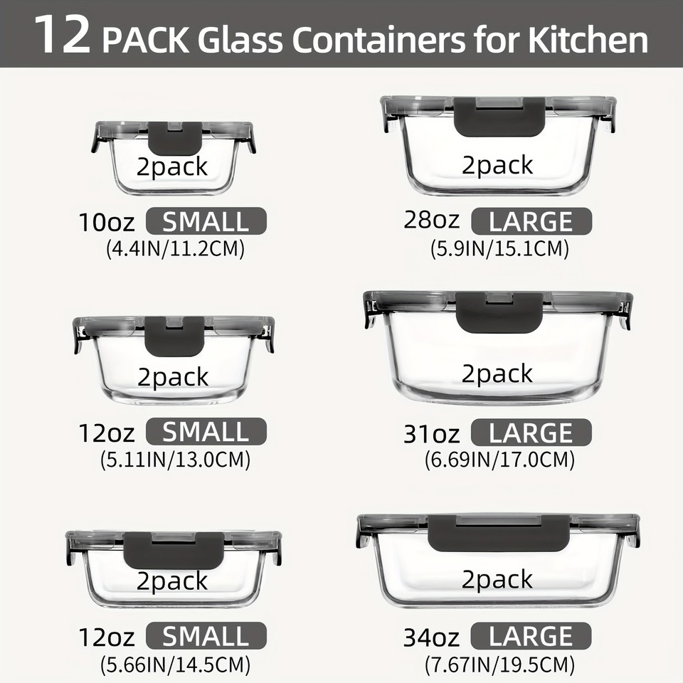 12 Pack Glass Food Storage Containers, Glass Meal Prep Containers with Airtight Lids, Dishwasher Safe
