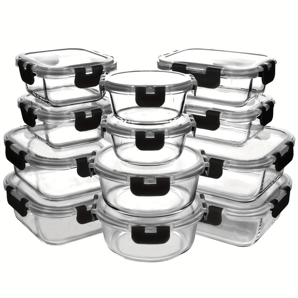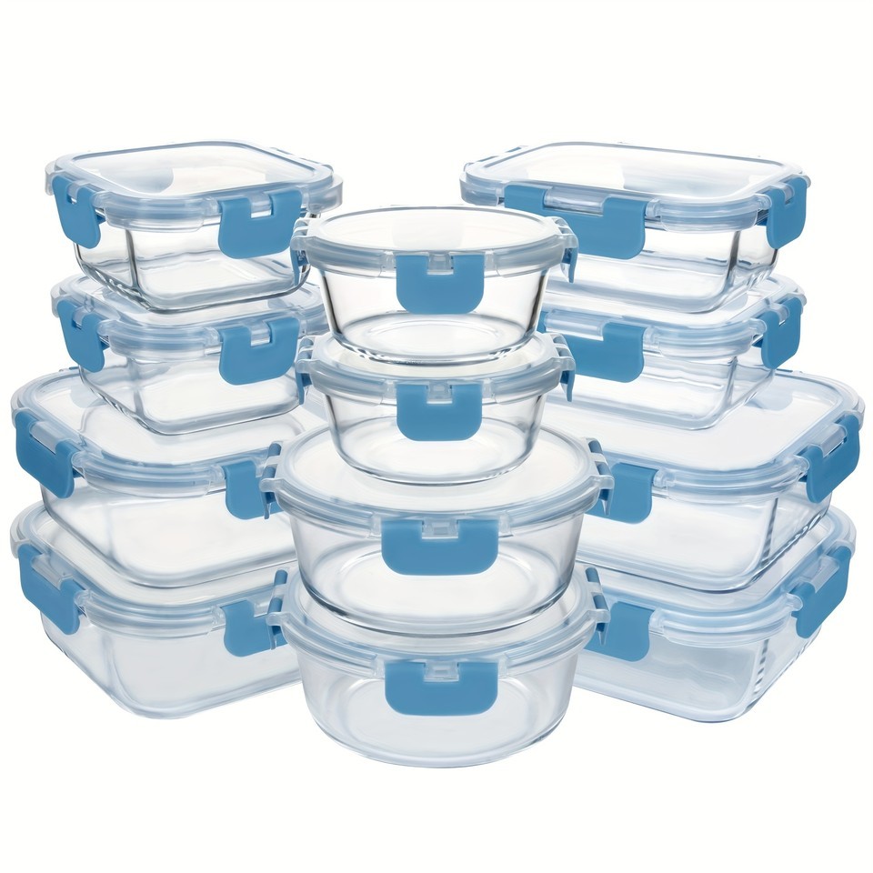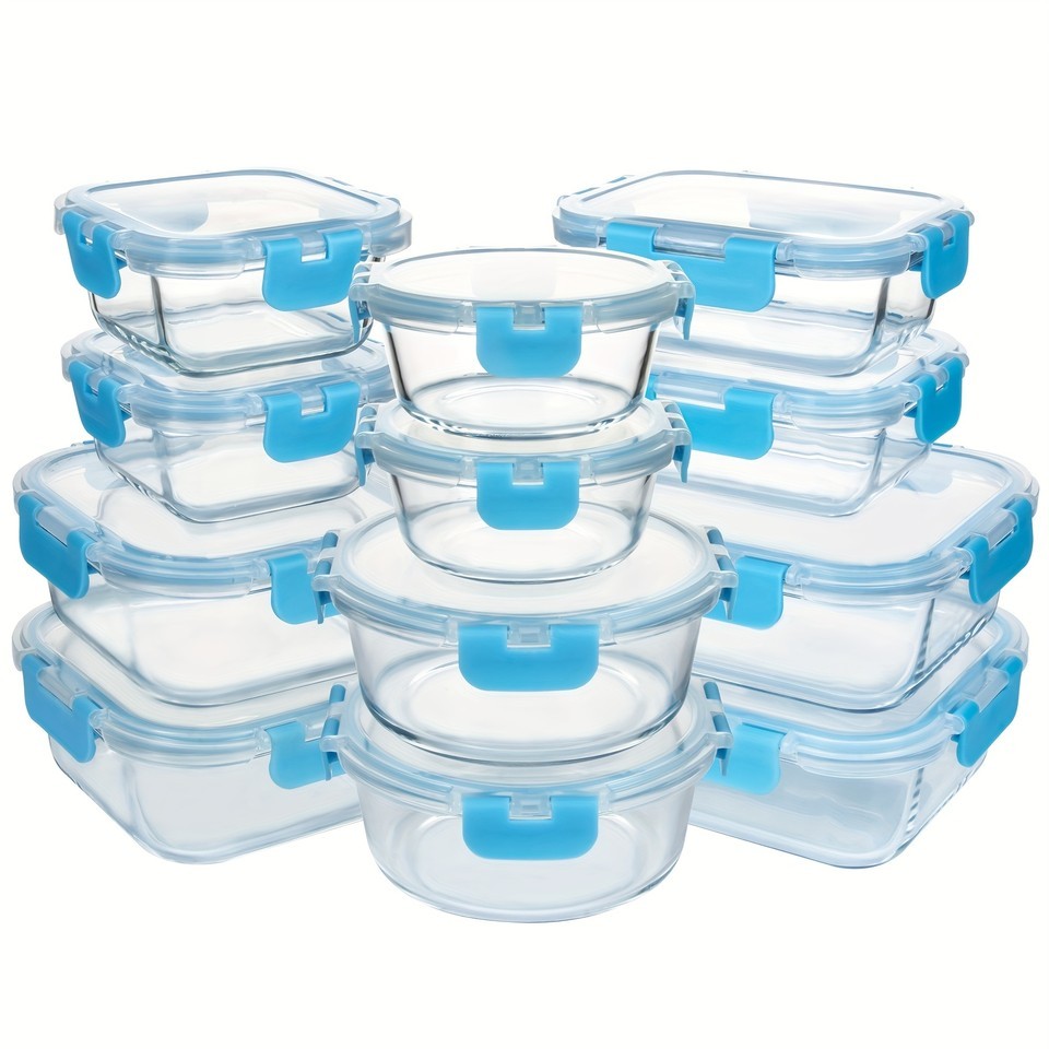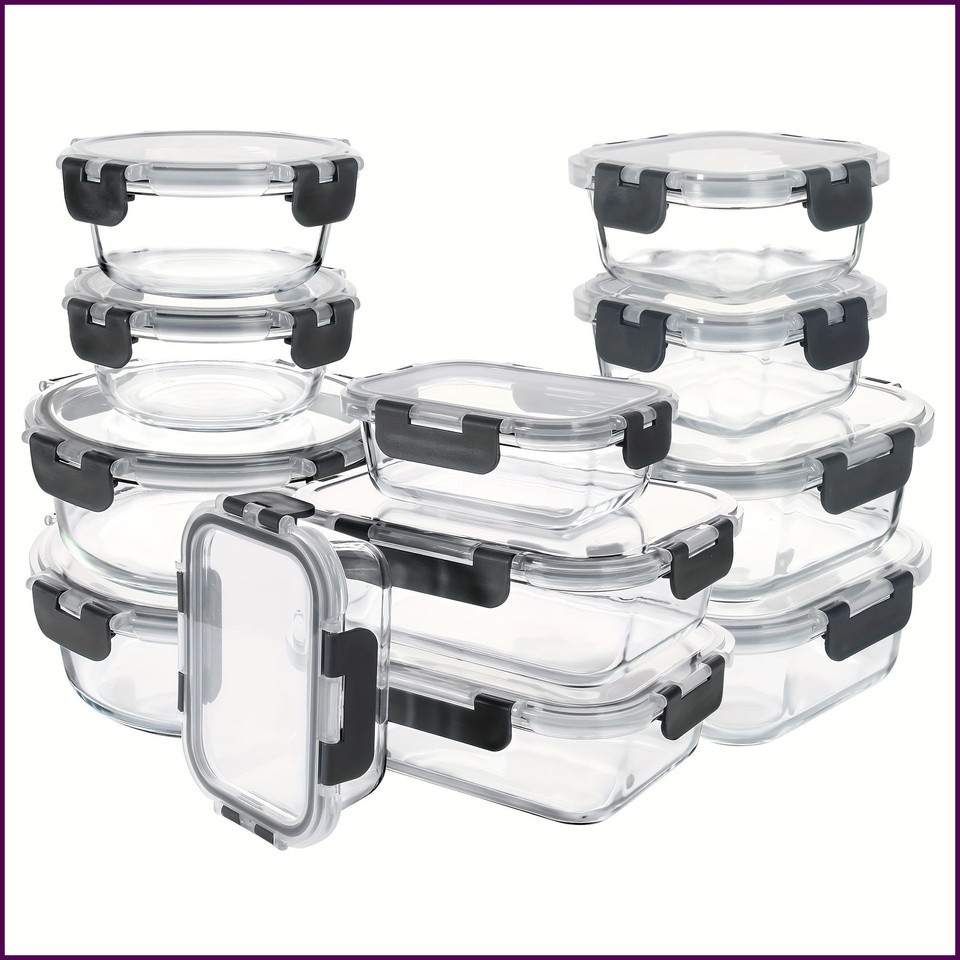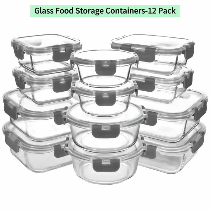 - 12 Pack Glass Food Storage Containers with Airtight Lids – Dishwasher Safe