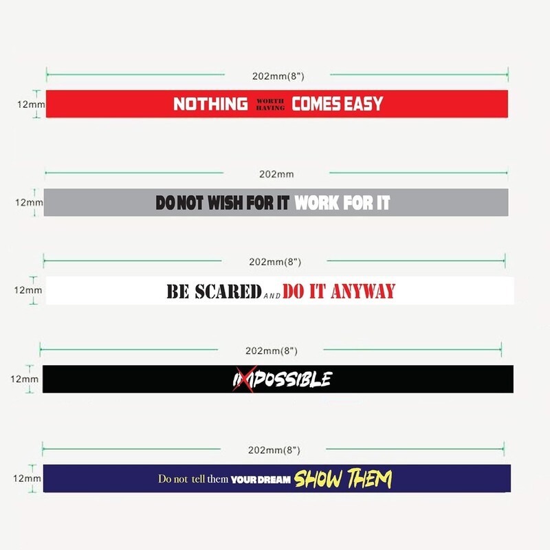 5 INSPIRATIONAL QUOTES: You will find five memorable motivational quotes within each 12 pack of rubber wristbands. Mix and match your favourite messages to suit your needs.