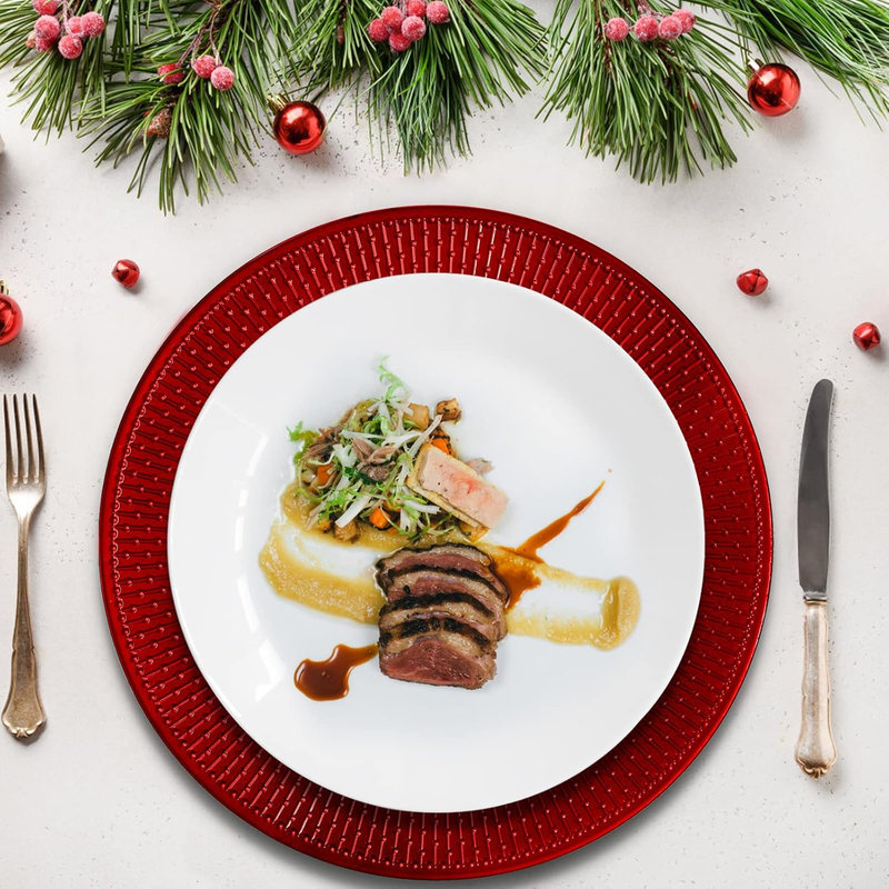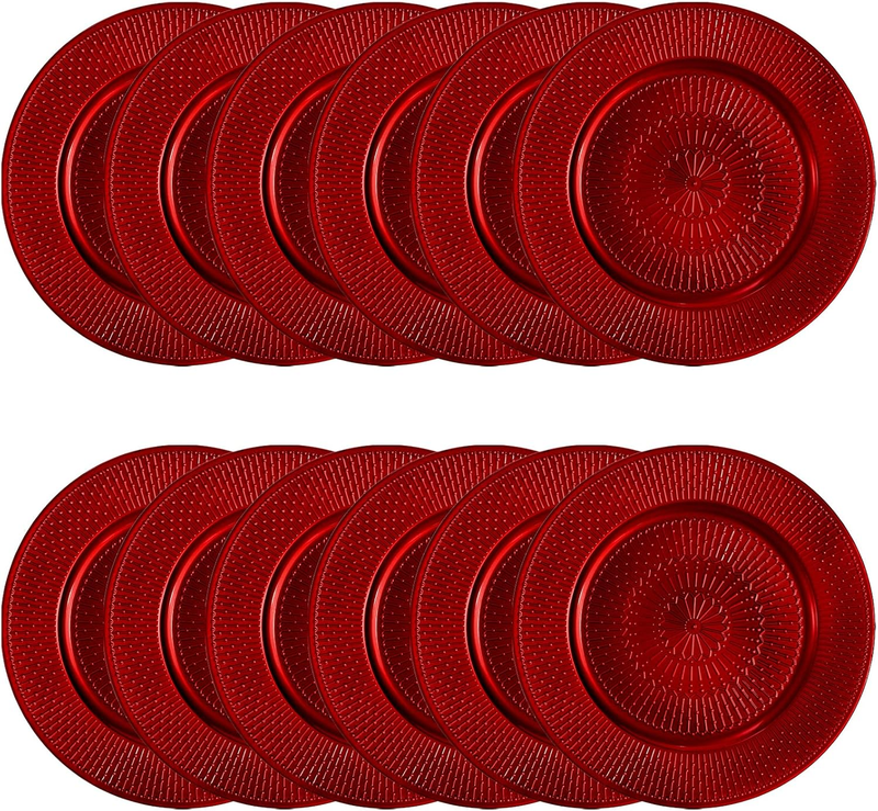 - 12 Pack Red Charger Plate, 13-Inch Beaded Chargers for Dinner Plates, Plastic Re