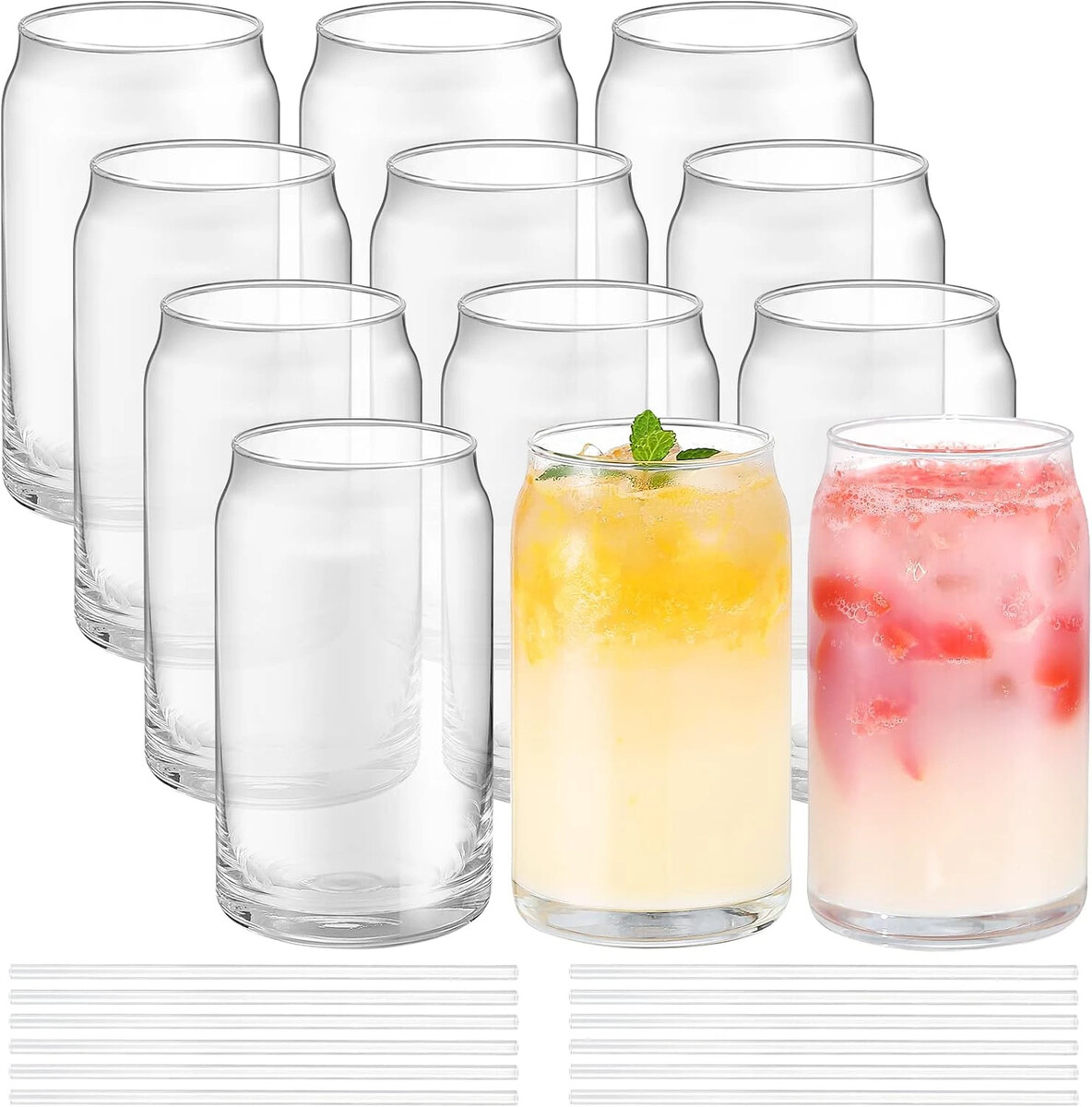 12 Pcs Beer Can Shaped Glass Cups Large 16 oz. Drinking Glasses Tumblers