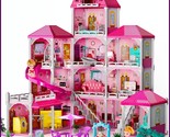? Lucky Doug Pink Dollhouse Playset ? 12 Rooms, 2 Dolls, Slide Accessories