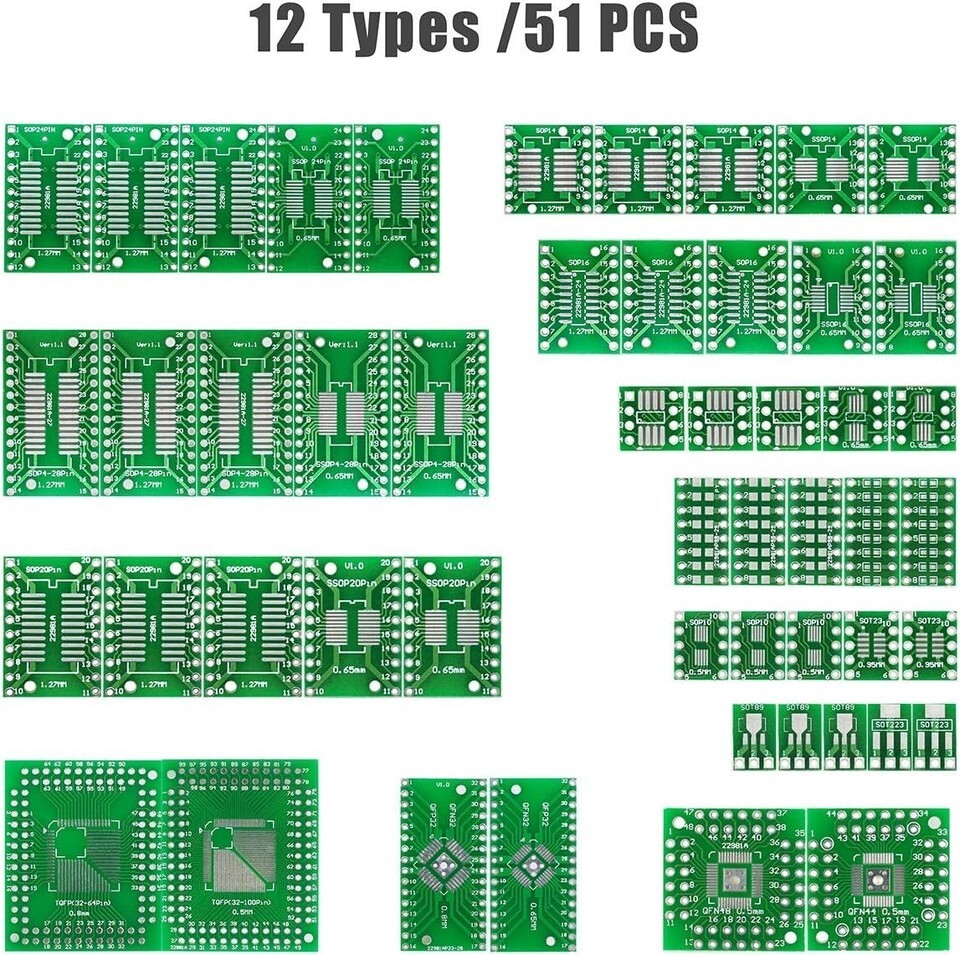 - 12 Types SMD to DIP Adapter Kit PCB Board for 0402/0603/0805 SMT,TQFP100/48, ...