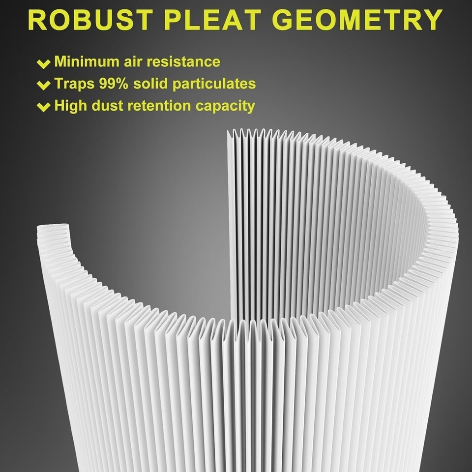 99% Effective Filtration: Robust pleated geometry allows for minimal air resistance while maintaining a high dust holding capacity.