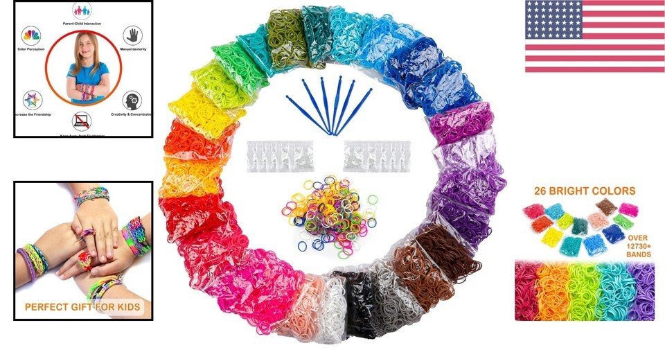 - 12730+ Premium Multicolor Rubber Band Kit with Clips & Hooks for DIY Bracelets