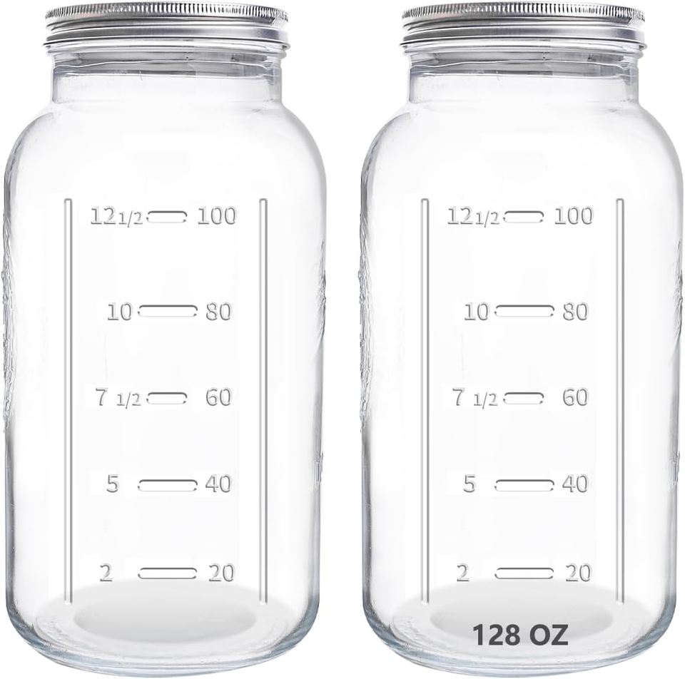 128 Oz Mason Jars Extra Wide Mouth 2 Pack, 1 Gallon Glass Large Jars with Airtight Lid, Safe for Food Storage,Curing, Fermentation and Preservation(Not Standard Wide Mouth)