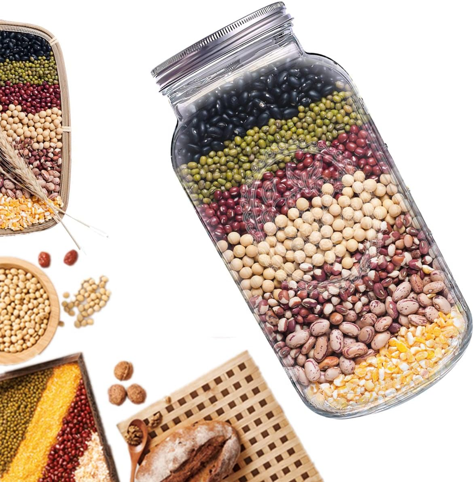 Thick Glass:: 2 Extra Wide Mouth Mason Jars 128 oz,Non Slip leakproof Silver Metal Airtight Lids .The mason jar set can be used for 30 months or even longer