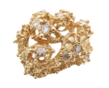 12K GOLD Vintage Ring 1/4 Ct Diamonds Inlay Brutalist Carved Dome Sz 6.25 GR939