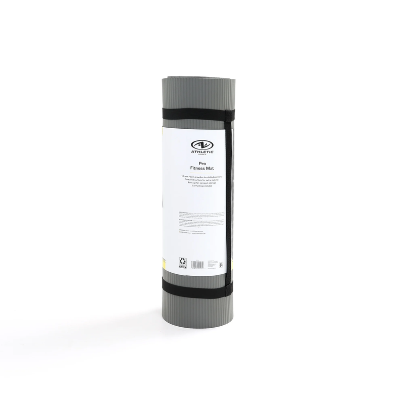 Athletic Works 12mm Pro Fitness Mat, Size: 72inx23.5inx12mm. Durable NBR material. Slip-resistant design Folds up easily, Includes a carrying strap The extra-thick, long, wide non-slip design adds traction, stability, and grip to maintain poses and enhance proper alignment while working out.