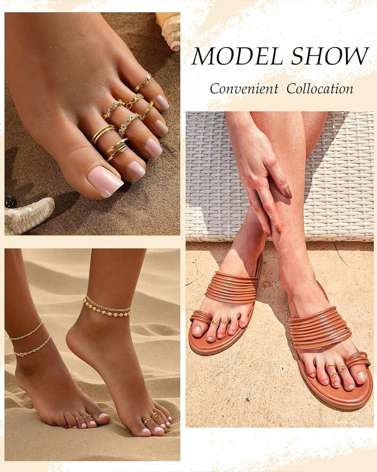 Indulge in the elegance of our 12PCS 14K Gold Plated Adjustable Toe Rings Set ? the quintessential accessory for summer! Embrace unique designs that elevate your style, ensuring you stand out whether at the beach or a chic outdoor event. The adjustable nature of these rings ensures the perfect fit, providing both comfort and style for every young lady and woman.