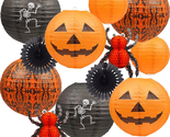 - 12Pcs Halloween Hanging Decorations Paper Lanterns, Jack-O'-Lantern Spider Skele