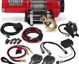 - 12V Electric Winch with 2 Wireless Remotes and Steel Rope, Perfect for Off-Road
