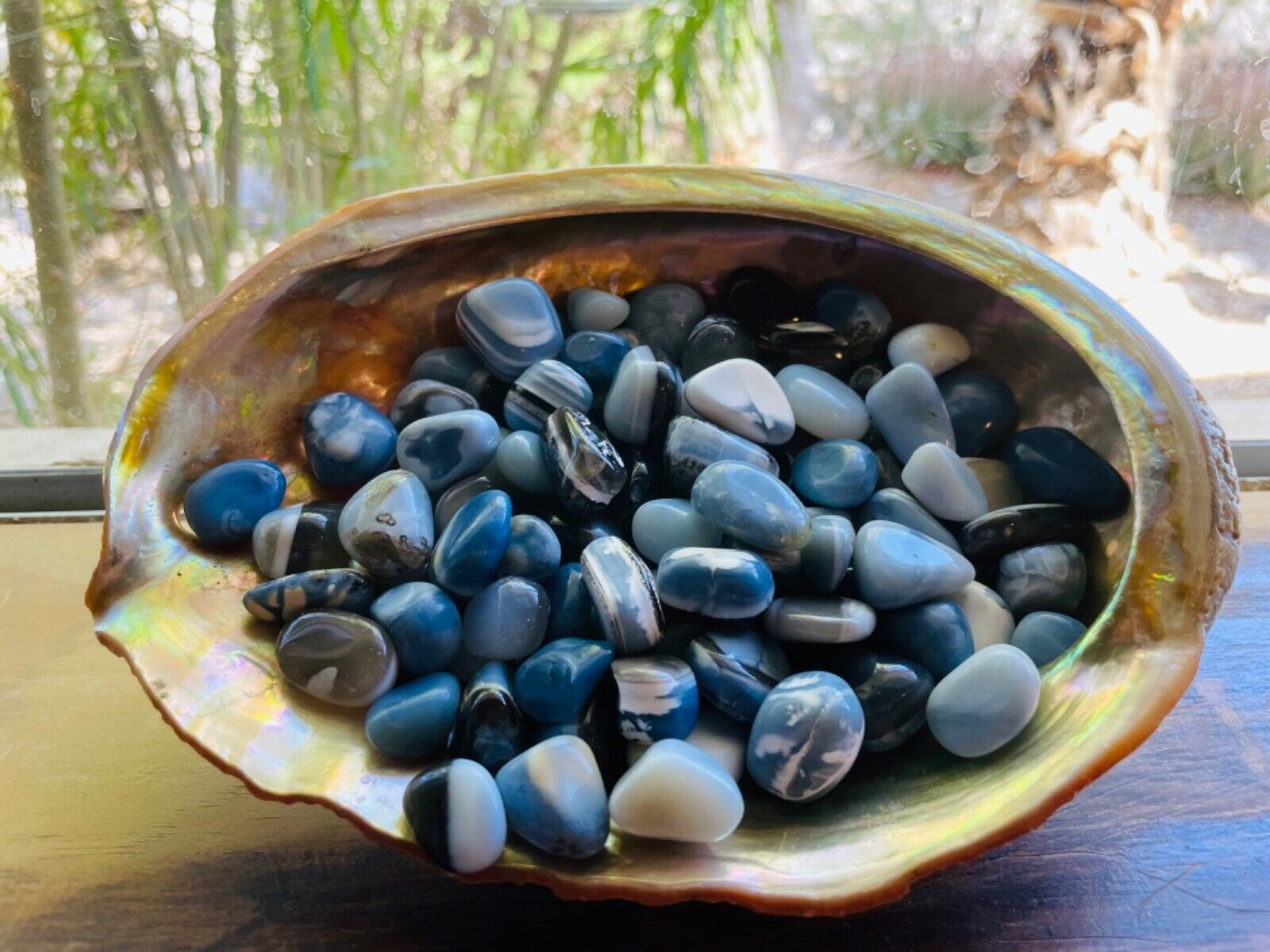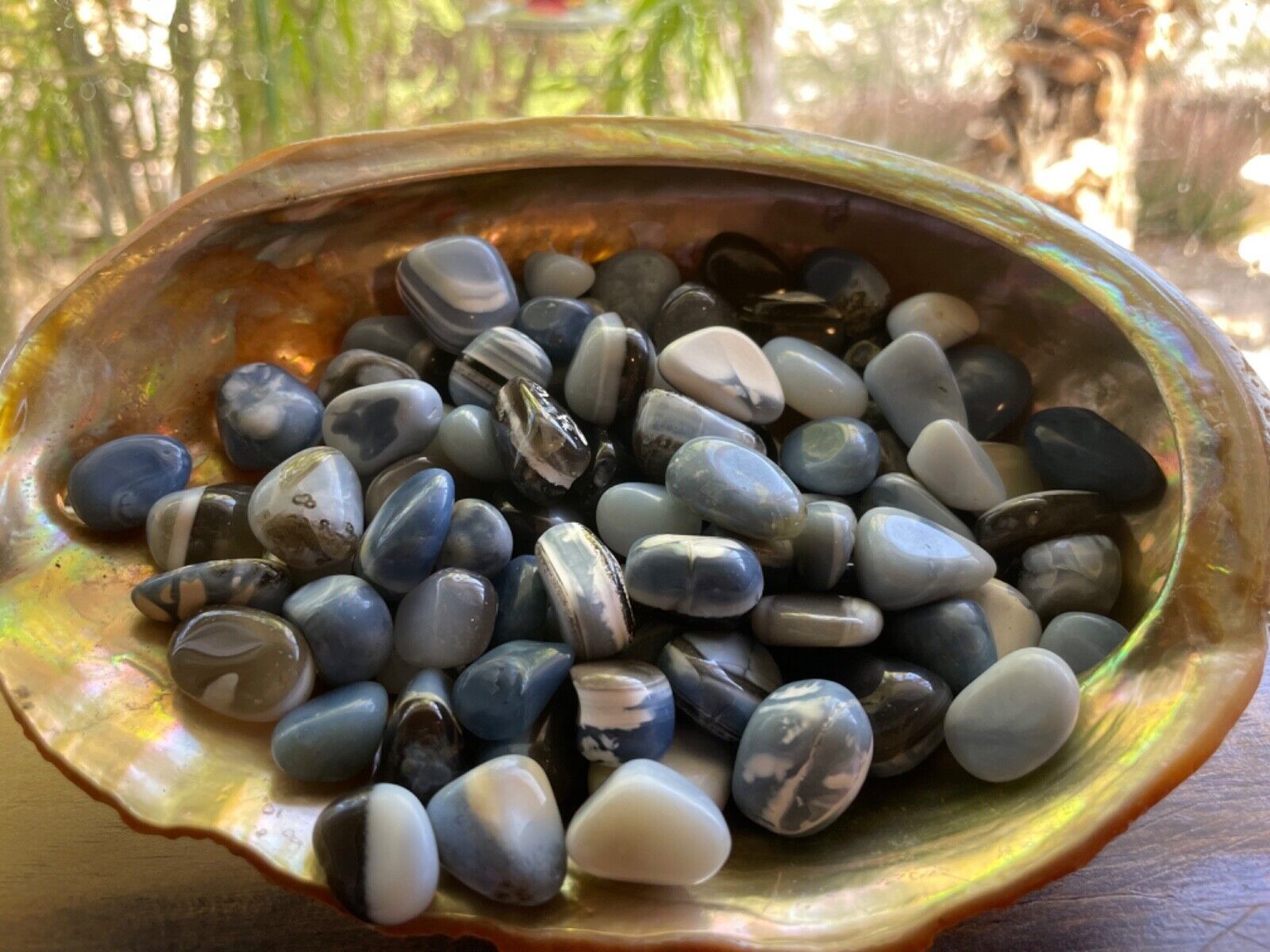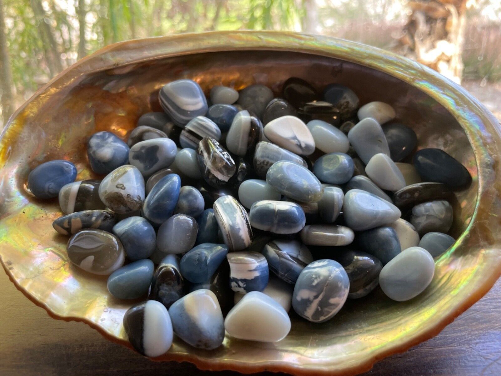 - 12X Blue Opal Tumbled Stones Small 15-20mm Reiki Healing Crystals Throat Chakra