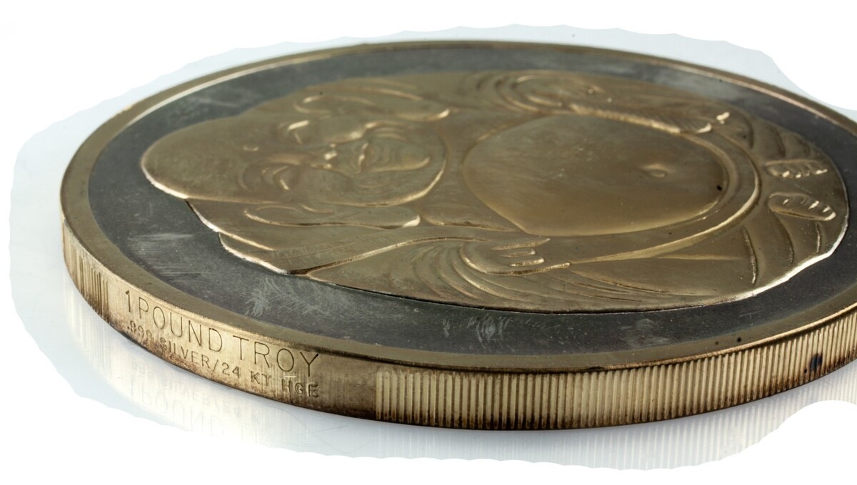12oz Fine Silver Collecable Round Buddha/ Lotus Flower Design Two Tone Finish