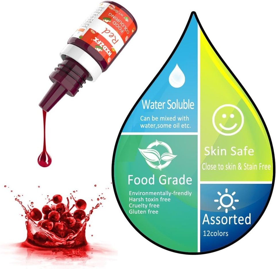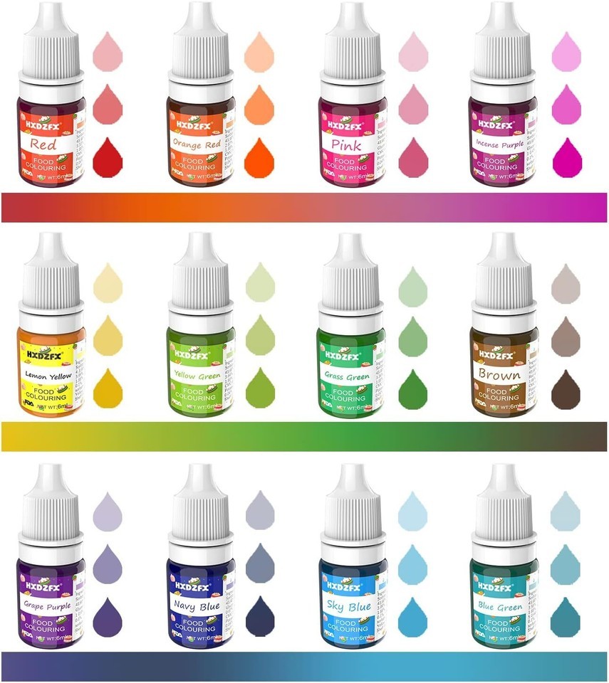 Unleash your creativity with this vibrant HXDZFX food colouring set, featuring 12 highly concentrated colours in easy-to-use squeeze bottles. Whether you're decorating cakes or crafting slime, these food-safe dyes deliver bold, bright results without altering taste or texture.