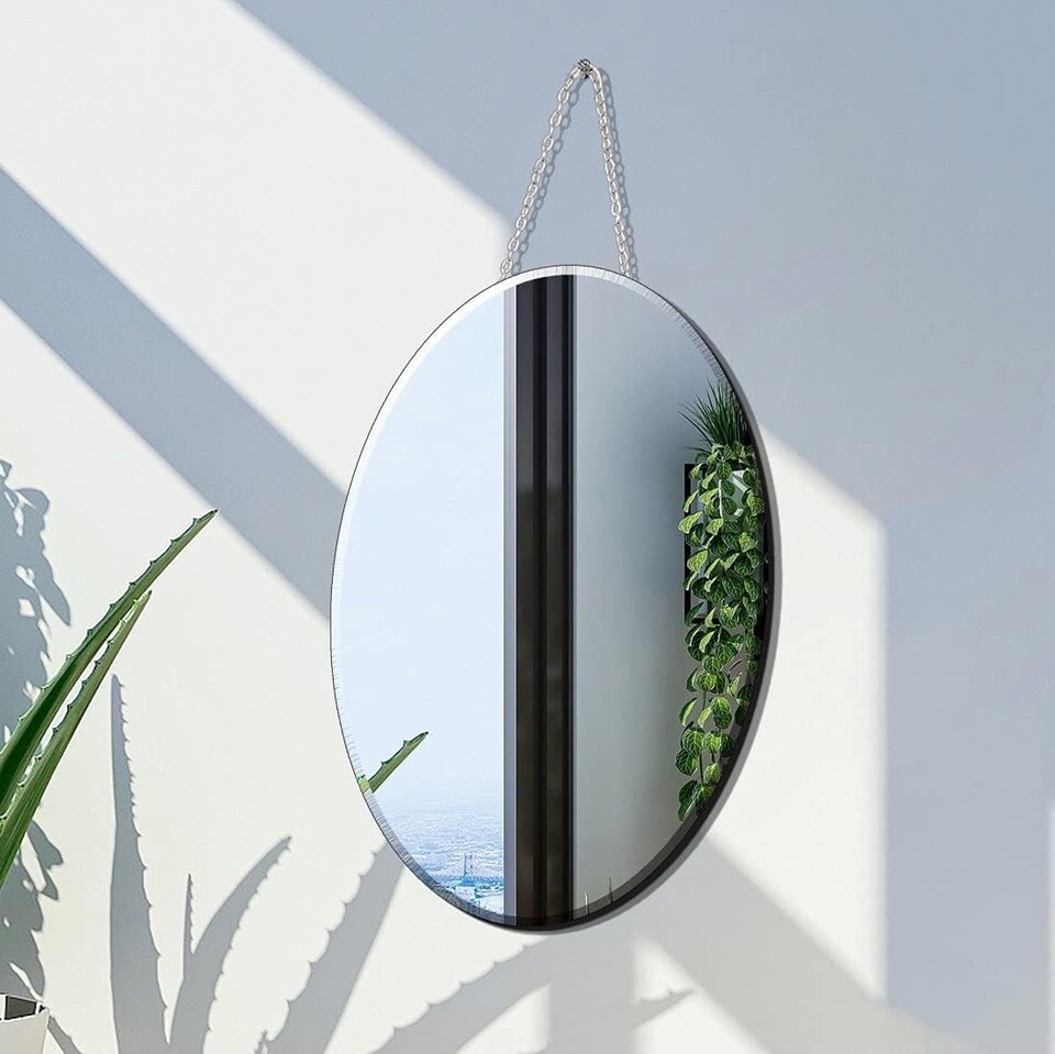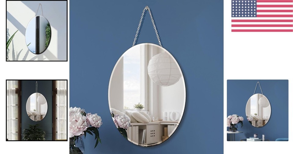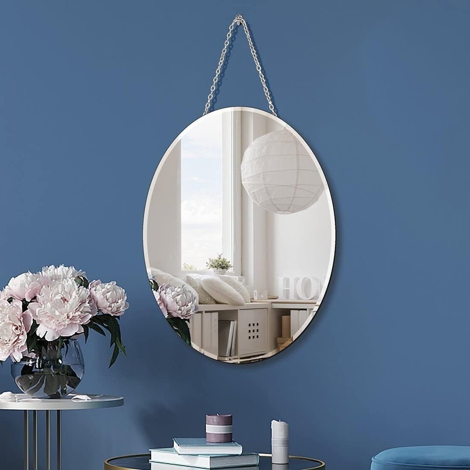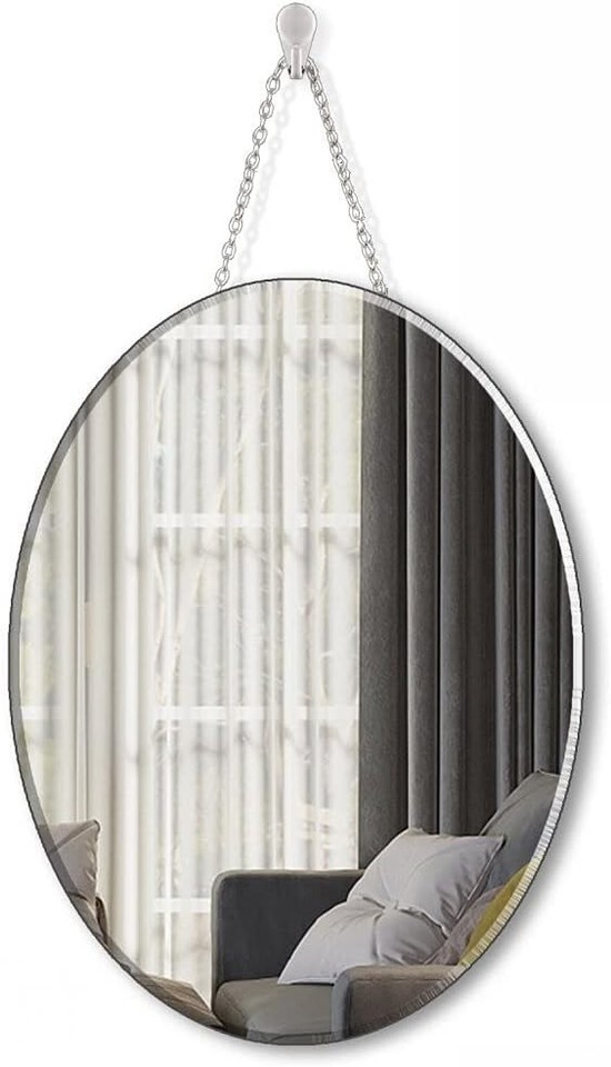 12x16 Inch Silver Oval Mirror with Chain & Hangers – Easy Installation Wall Art