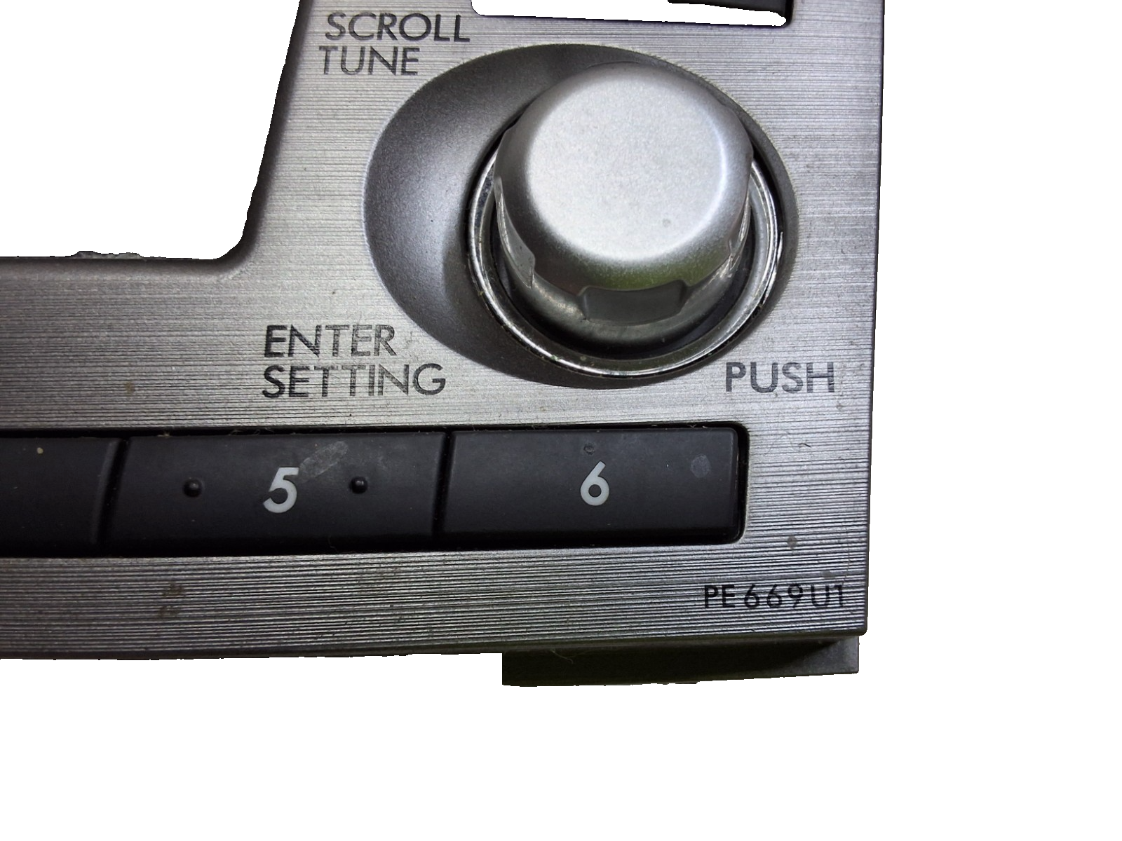 2013 to 2014 Subaru legacy AM/FM XM HD radio CD receiver. Faceplate ID PE669U1. Located in the lower right corner.