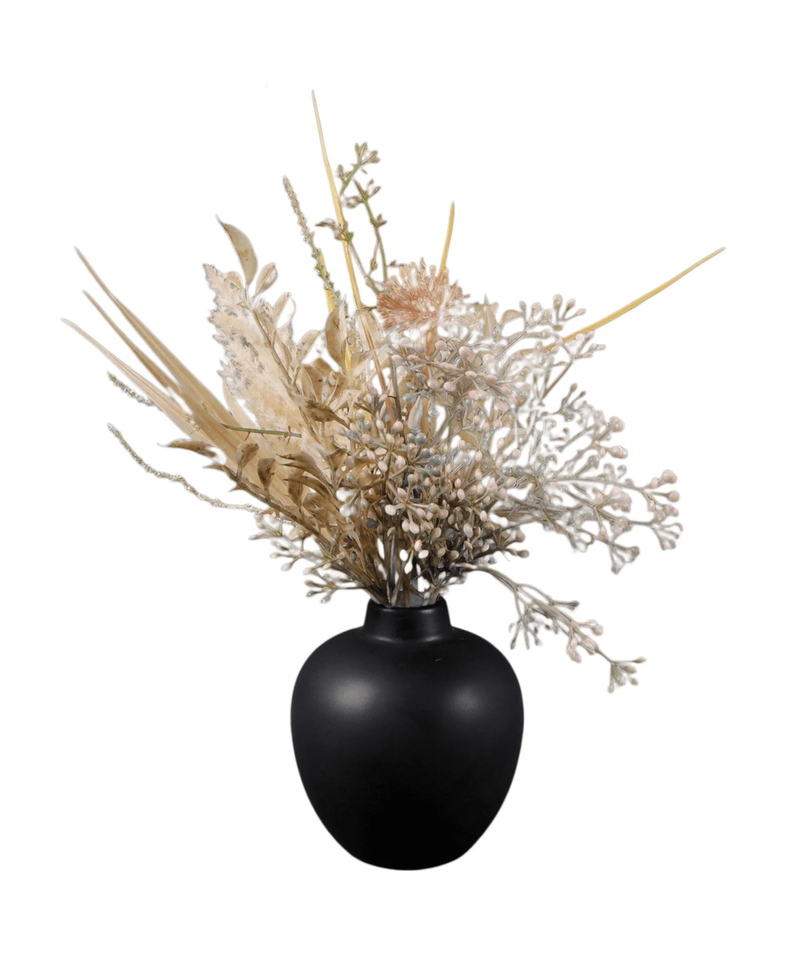 Features lifelike fall leaves in rich, warm hues that capture the beauty of real autumn foliage Sleek black ceramic vase provides a bold, modern contrast to the vibrant seasonal arrangement Ideal size for tabletops, mantels, shelves, or office desks?adds festive charm without taking up space Made from 50% Ceramic, 35% Plastics, 12% Foam, and 3% Glue for lightweight durability and style Perfect seasonal decor for fall decorating, Thanksgiving centerpieces, or festive gifting No Maintenance Needed ? Enjoy year-round beauty with no watering or upkeep required. Handmade by artisans, ensuring unique craftsmanship