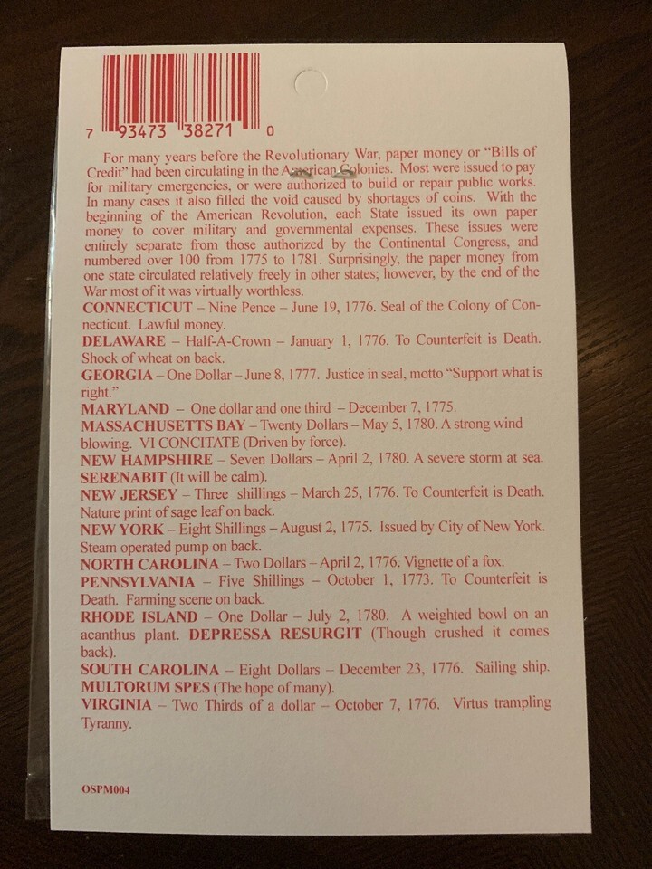 13 Original States Paper replica Currency. Shipped with USPS First Class Package.