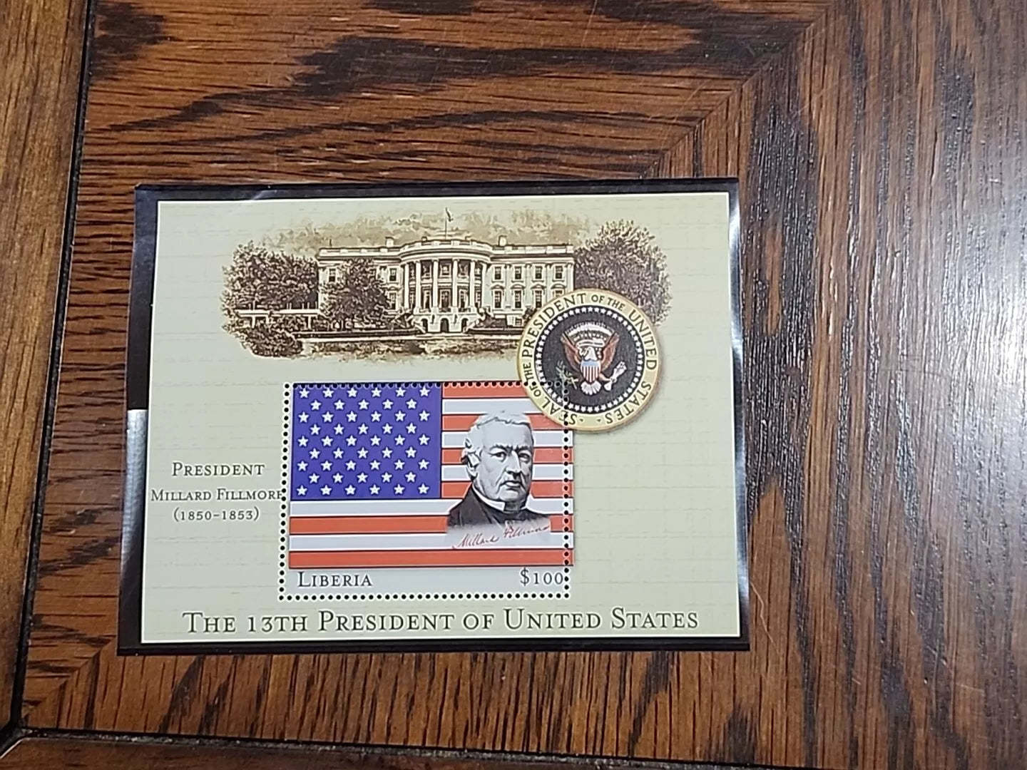 - 13th President Millard Fillmore $100 Stamp Liberia Mystic Stamp Company