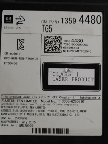 14 15 16 BUICK REGAL CD PLAYER INTELLILINK RECEIVER 13594480 OEM