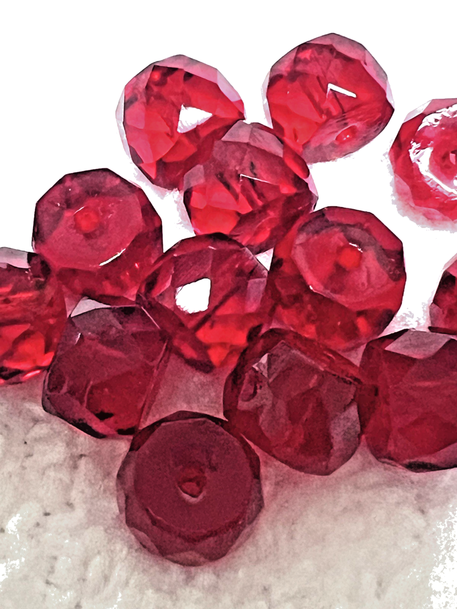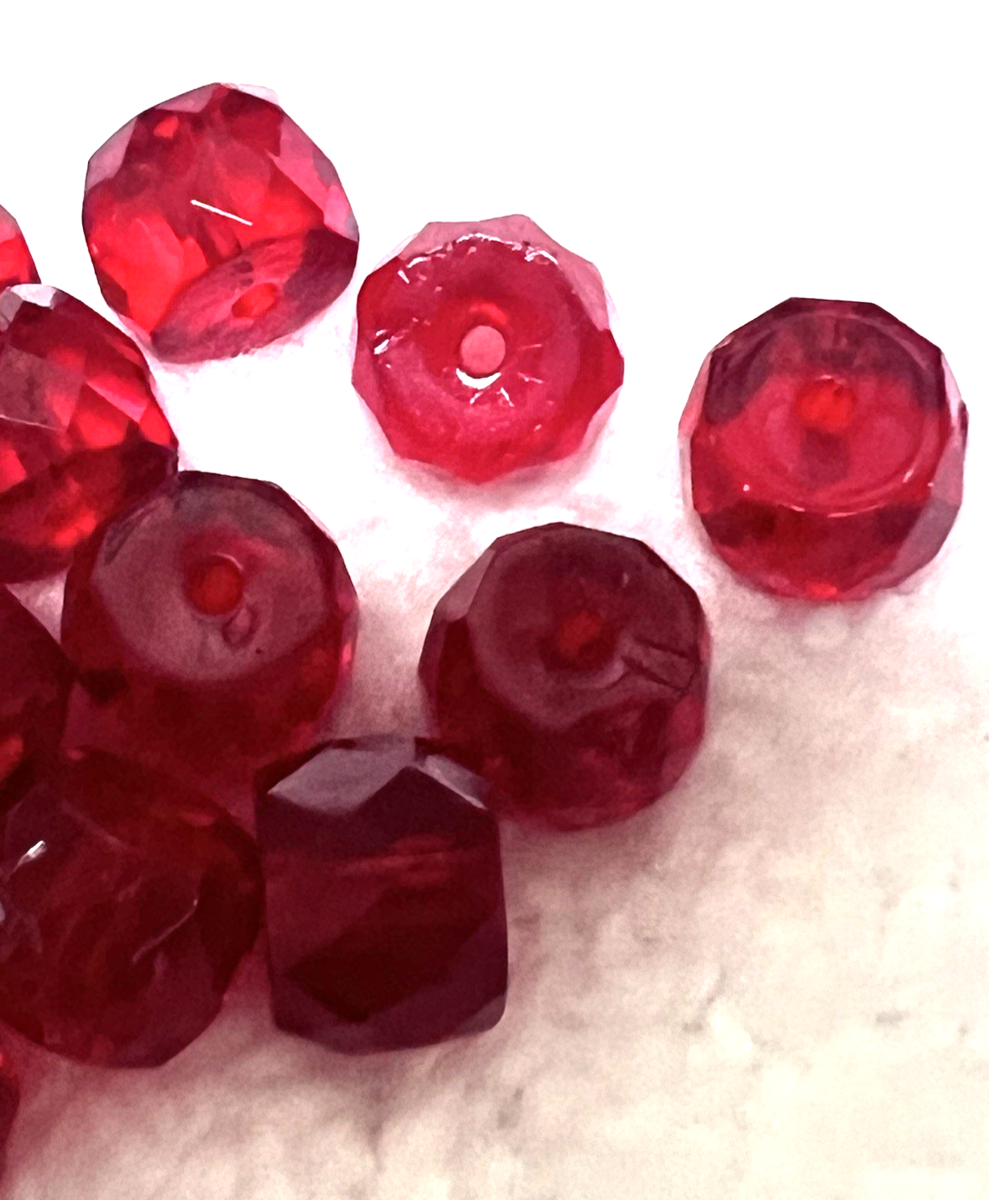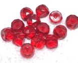 - 14 Vintage Faceted Glass Cherry Red Beads Slices 1/4 x 3/8 In Rounds