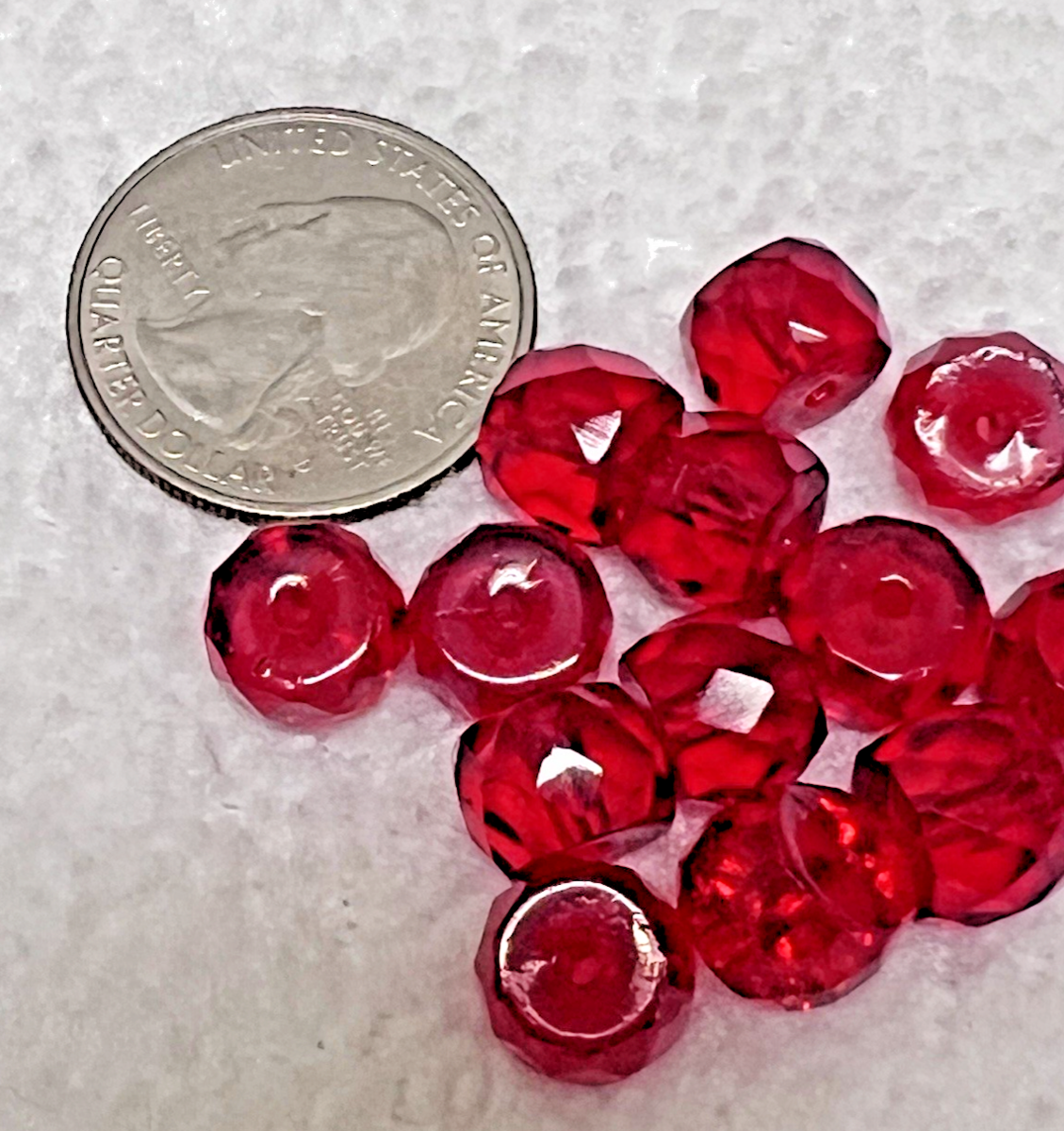 14 Vintage Faceted Glass Cherry Red Beads Slices 1/4 x 3/8 In Rounds