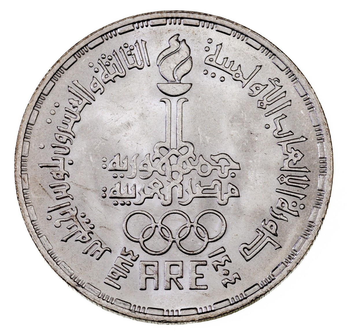 - 1404-1984 Égypte 5 Pounds Pièce Argent En Bu, Los Angeles Olympiques Km 558