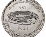 - 1405-1985 Egypt 5 Pounds Silver Coin in BU, 25th Anni. Cairo Stadium KM 578