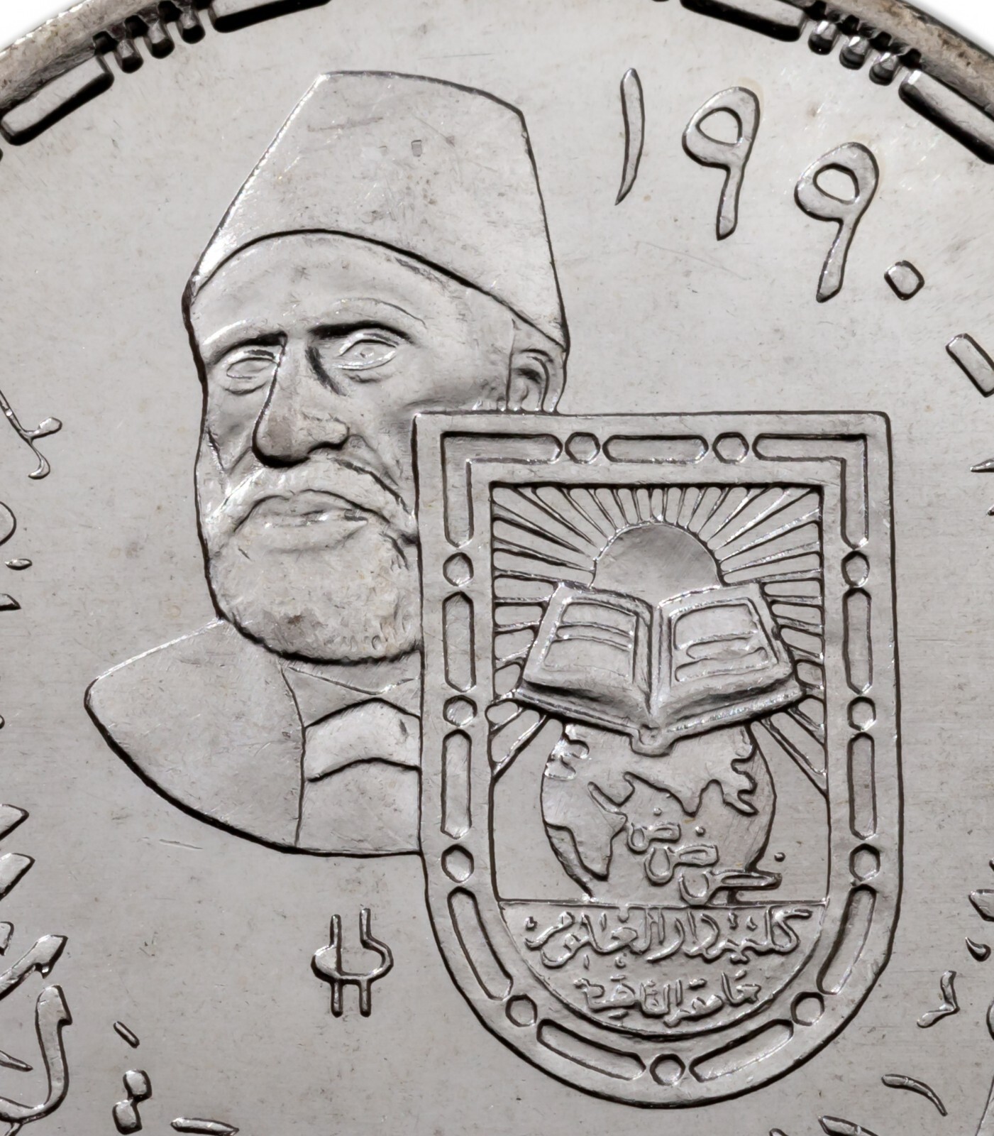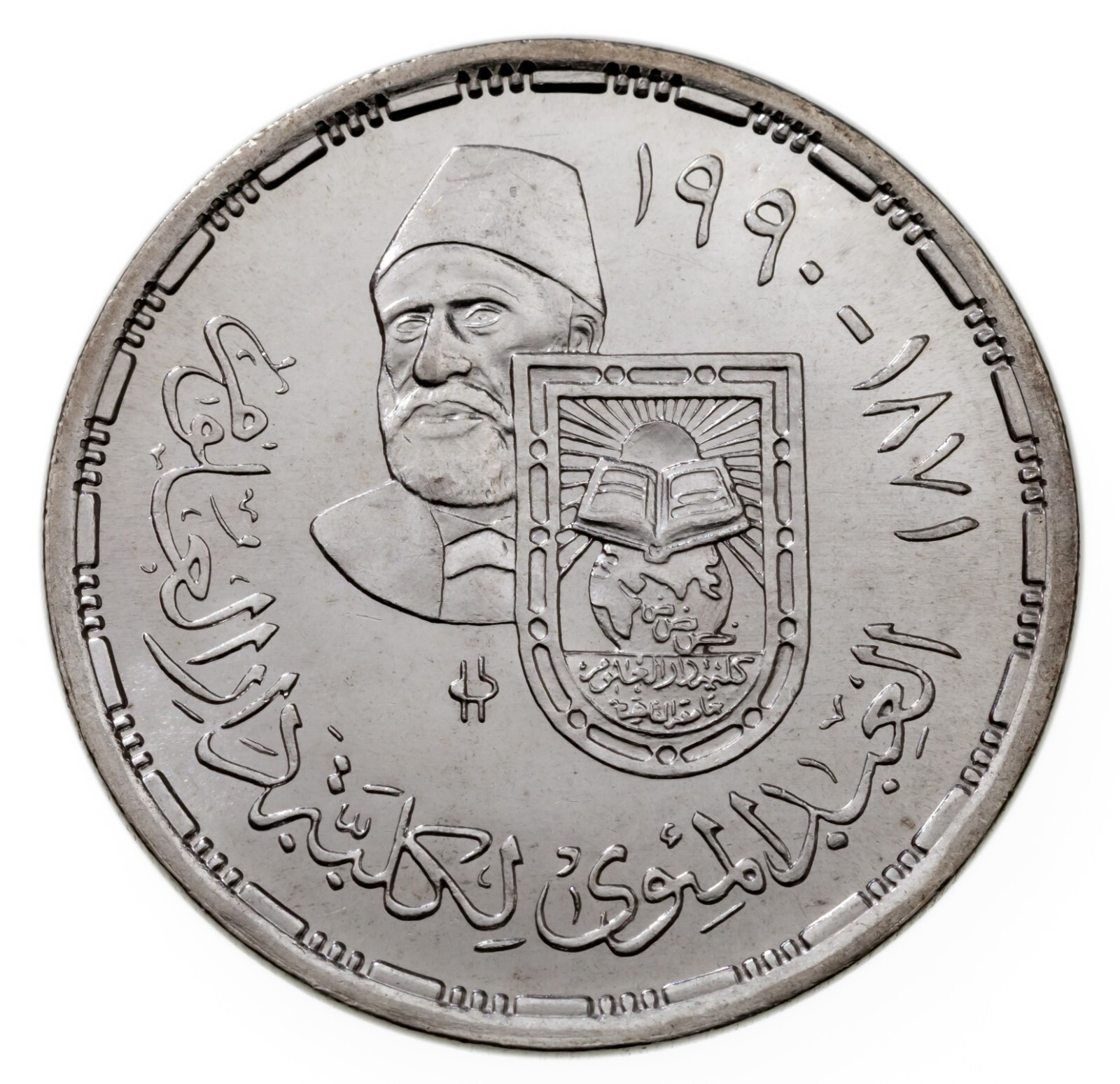 - 1410-1990 Egypt 5 Pounds Silver Coin in BU, Dar-el-Eloun Faculty KM 691