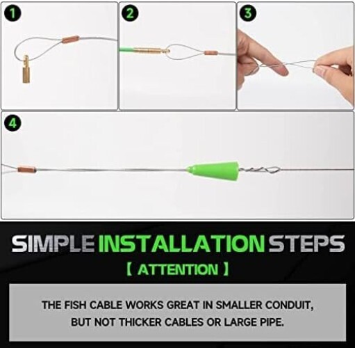 Bright green fish tape color enhances visibility, making it easy to distinguish the rods from wires.