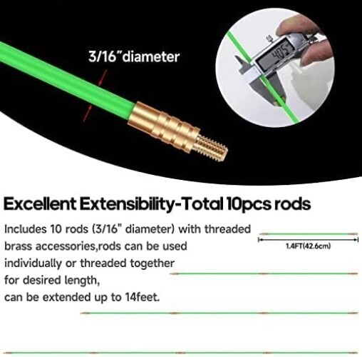 Invest in efficiency and organization?order your 14FT Fiberglass Fish Tape Wire Pulling Kit today, and ensure your wiring tasks are seamless and professional!