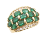 14K GOLD Vintage Ring 1/4 Ct Diamonds Border & 3 Ct Oval Emerald Sz 7.75 GR890