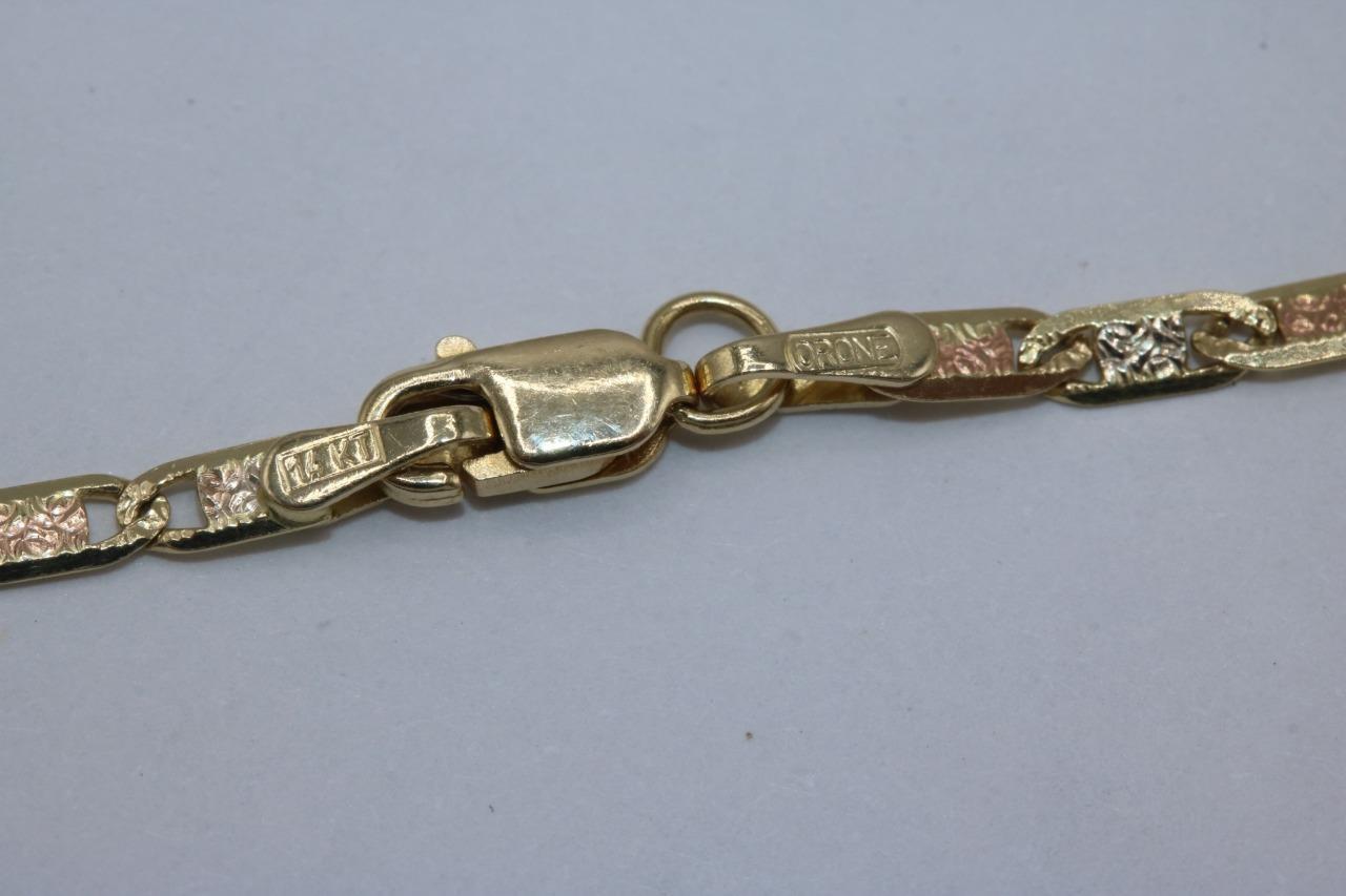 Fine 14K Tri Color Gold 2mm Mariner Link Chain Necklace 16" Long 3.9 Grams
