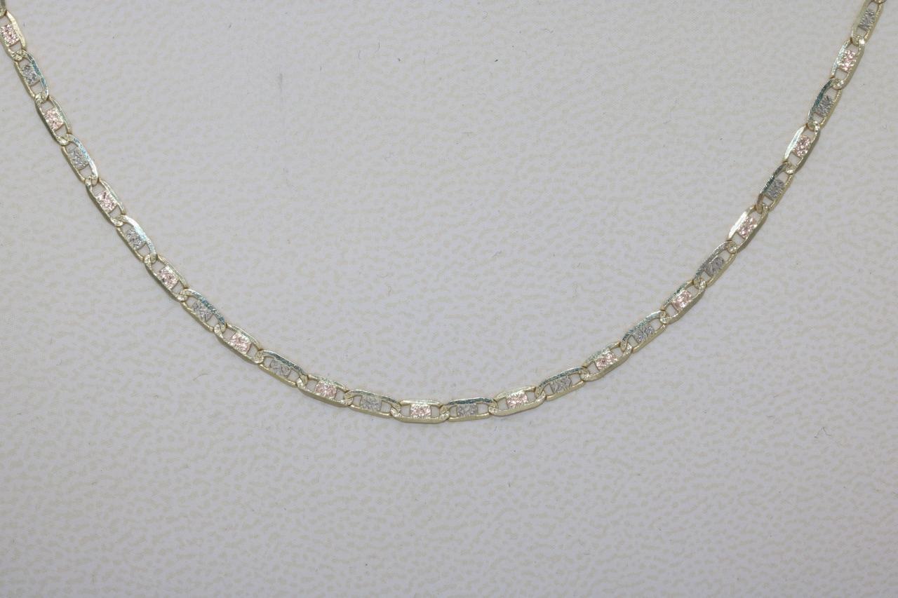 - 14K Tri Color Gold 2mm Diamond Cut Mariner Link Chain Necklace 16" Long 3.9 Gr