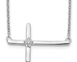 - 14K White Gold Diamond Sideways Cross Necklace
